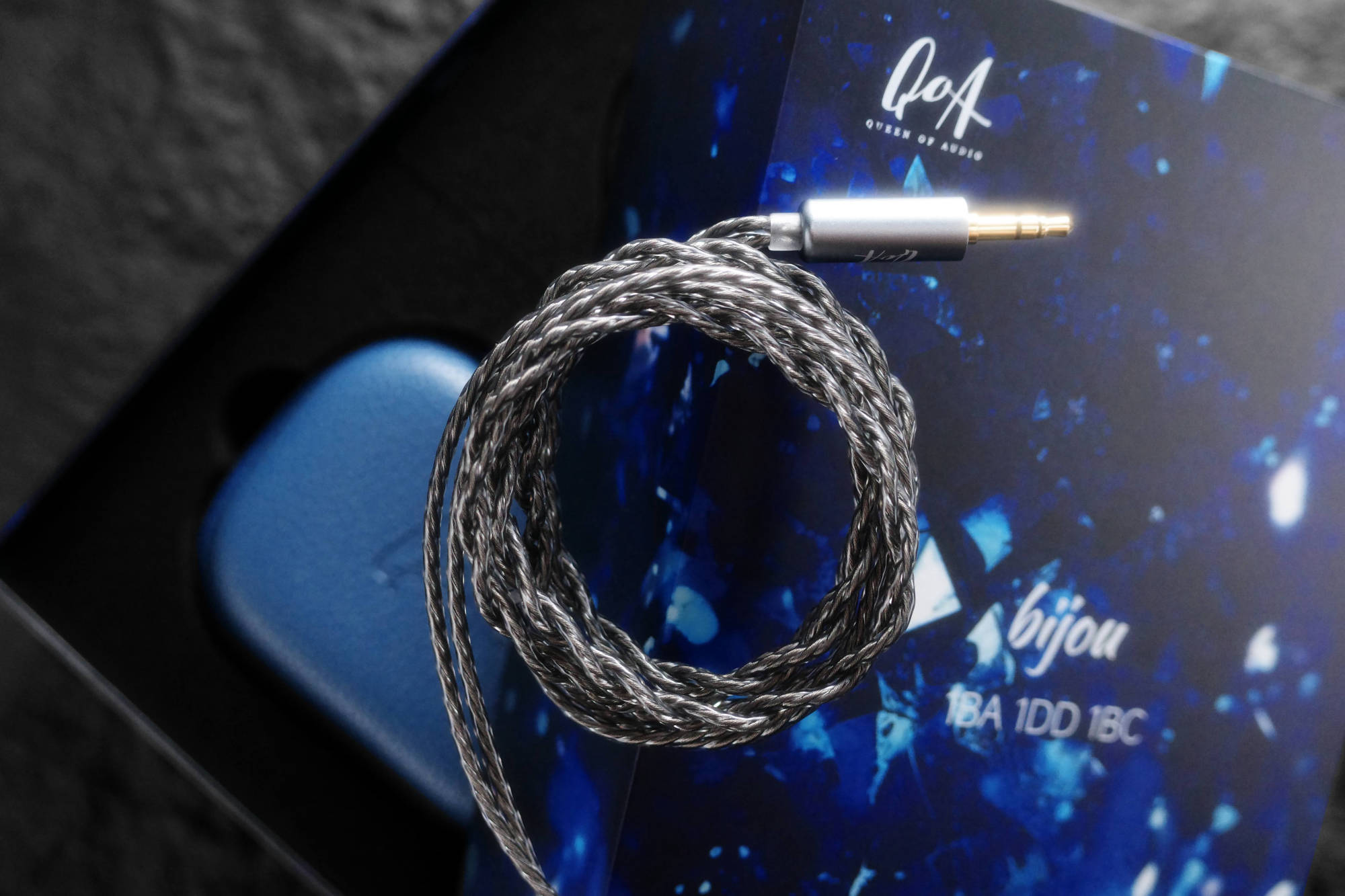 QoA bijou インイヤーモニター 1組 | シリコンゴム製イヤーチップ 6セット | OFC銀メッキ 0.78mm 2ピンケーブル 1本 | オーシャンブルーのPUレザー製収納ケース 1個 | 取扱説明書 1部 | 保証書 1枚 | 日本版のみUSB-C 変換アダプタ