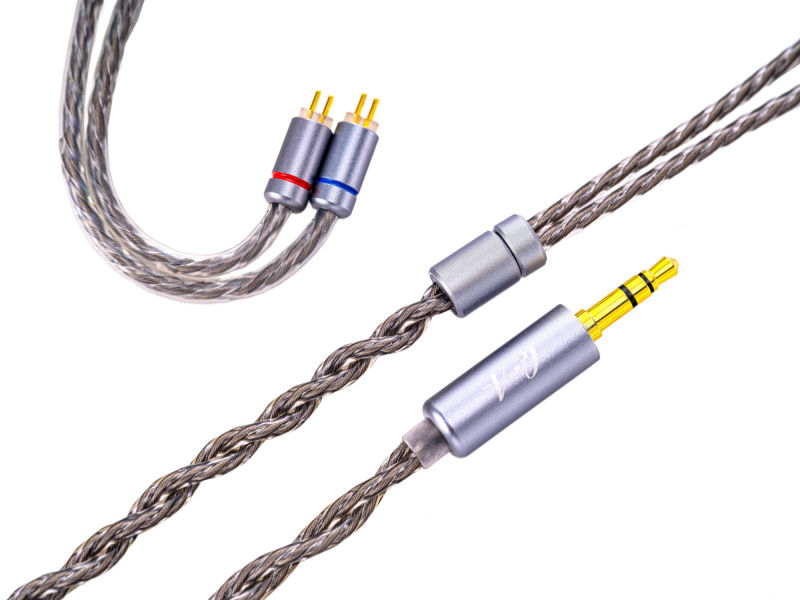 7本撚り構造(1本あたり0.06mm×7本)の高純度OFC銀メッキ銅芯を採用。柔軟性に優れたPVC外被により、耐久性と耐屈曲性が向上しています。シームレスな銀メッキアルミニウム製金具が、高級感あふれる仕上がりを実現しています。