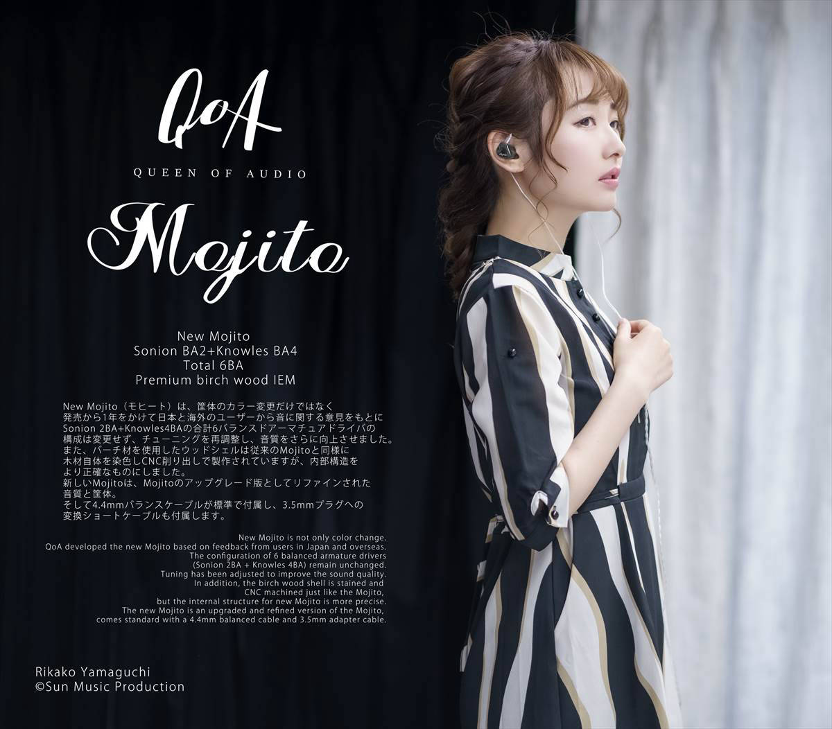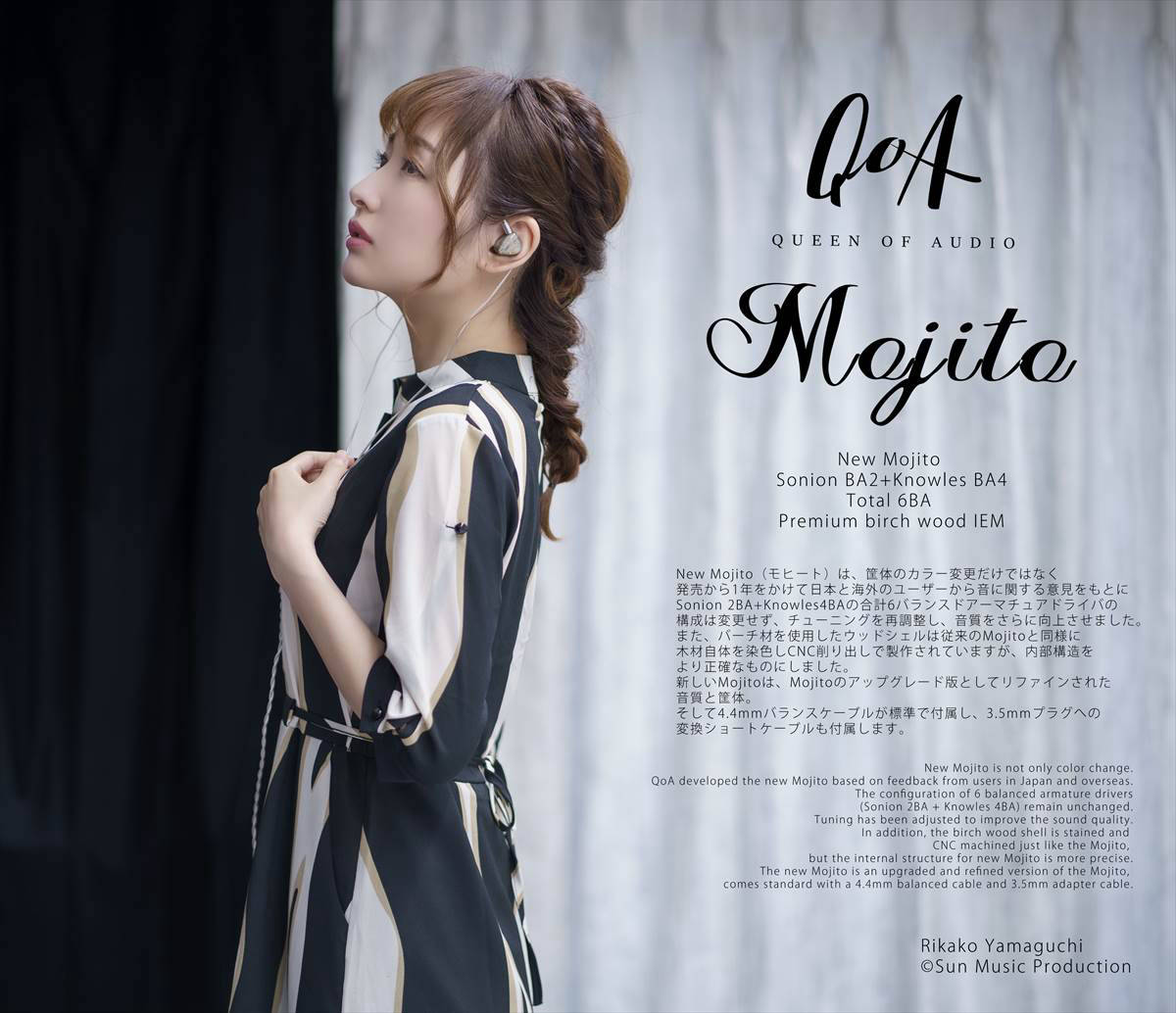 Mojitoは高解像度でありながら聞き疲れしにくいウォームな音質を実現し、高解像度+聞き疲れしないことを両立し、木製のハウジングとあわせて総合的に非常に個性にある高音質なフラッグシップイヤホンに仕上がっております。また2Pinリケーブル対応で付属のイヤホンケースも非常にデザイン性が高く高品質で使い勝手が良いものになっています